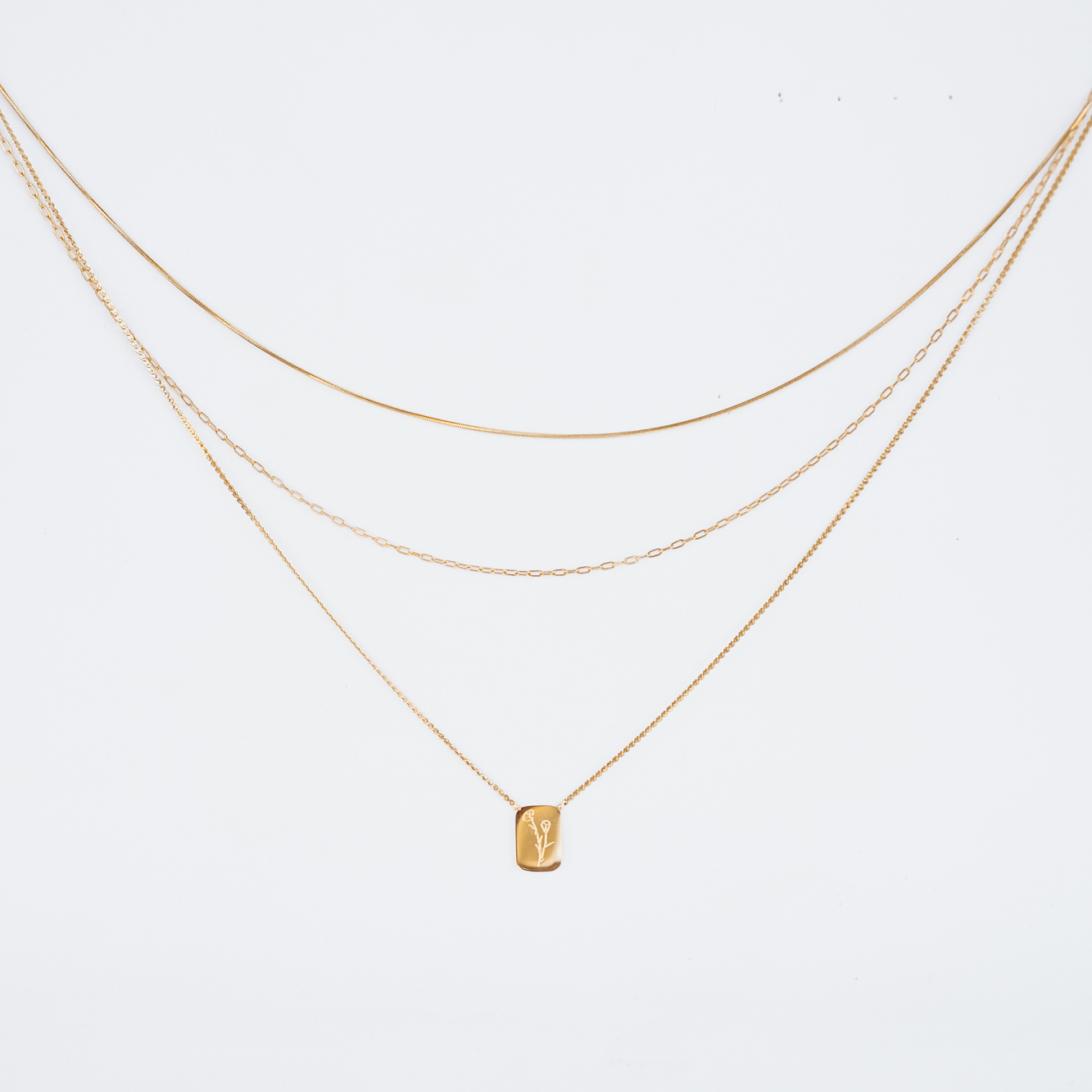 שרשרת שכבות מושלמת בעלת תליון מרובע בעוטר בשושנה עדינה בסגנון וינטאג'. עדינות ונוכחות משולבות יחד.